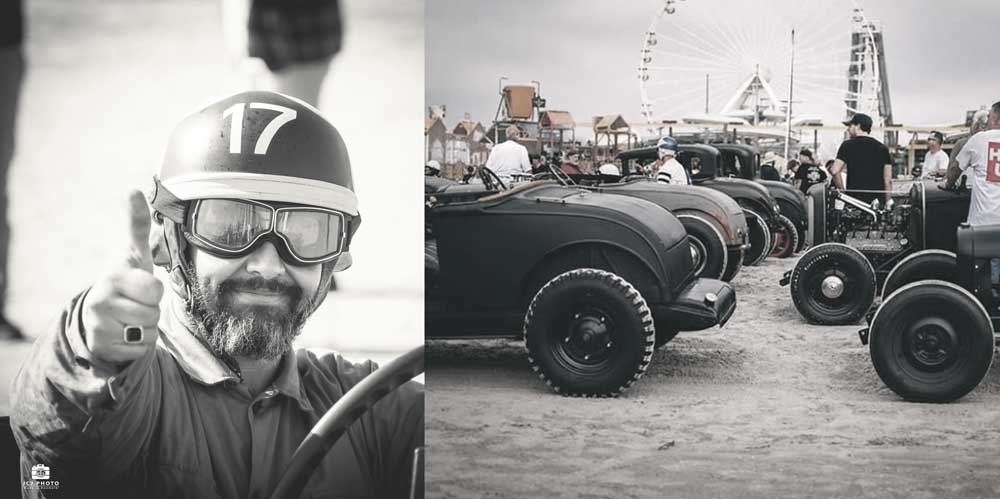 Greg Ce splendide Ford 1927 comprenant une carrosserie et une motorisation rare en France ainsi que deux essieux montes suicide (devant et derrière le châssis) seule solution pour voler vraiment bas.... Le 4 cylindres FORD à soupapes latérales de 1934 est équipé de deux carburateurs HOLLEY 94 sur admission Zepher d’époque et d’un arbre à came un peu plus pointu que celui d’origine. Volant de FORD 32 et une instrumentation de 1931, un habitacle sans aucune fioriture, une banquette de FORD "A" habillée de cuir ..... C’est avec un grand plaisir que ce rod a parcouru la plage de Romø pour le 3 ème RØMØ MOTOR FESTIVAL où Greg fut le premier rod français à participer avec le race team KS ! Grégory Herve - Sodilub Lubrifiants |