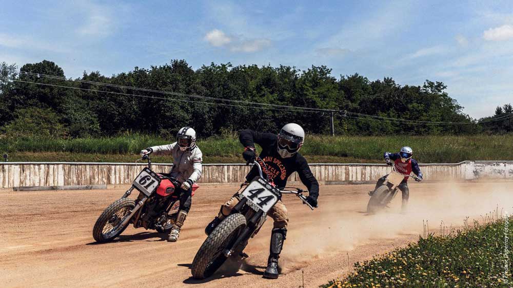 Regis Passionné de Moto cross et enduro vintage depuis mon plus jeune âge, je me suis mis au Flattrack il y a maintenant 3 ans. Le Flattrack a été tout d’abord pour moi l’occasion de me remettre à la moto sur terre entre potes ! La discipline consiste à tourner vers la gauche le plus vite possible sur des pistes ovales mesurant entre 300 et 700 mètres, équipé d’une semelle métallique au pied gauche servant de point d’appui. C’est une discipline en plein essor restant encore assez confidentielle en FRANCE. Le Flattrack est un tout petit milieu composé de personnes et de personnalités venant de différents horizons, où l’ambiance est excellente et l’entre aide le maître mot ! Mais nous manquons encore d’anneaux et d’épreuves pour assouvir pleinement notre passion. |